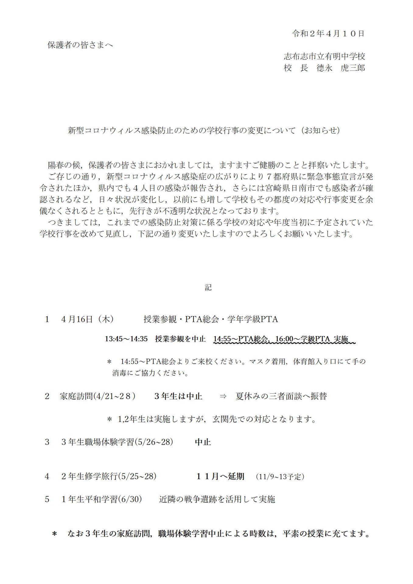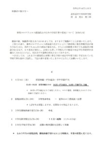 4月10日(金)新型コロナウィルス感染防止のための学校行事の変更について(お知らせ)を発行しました!