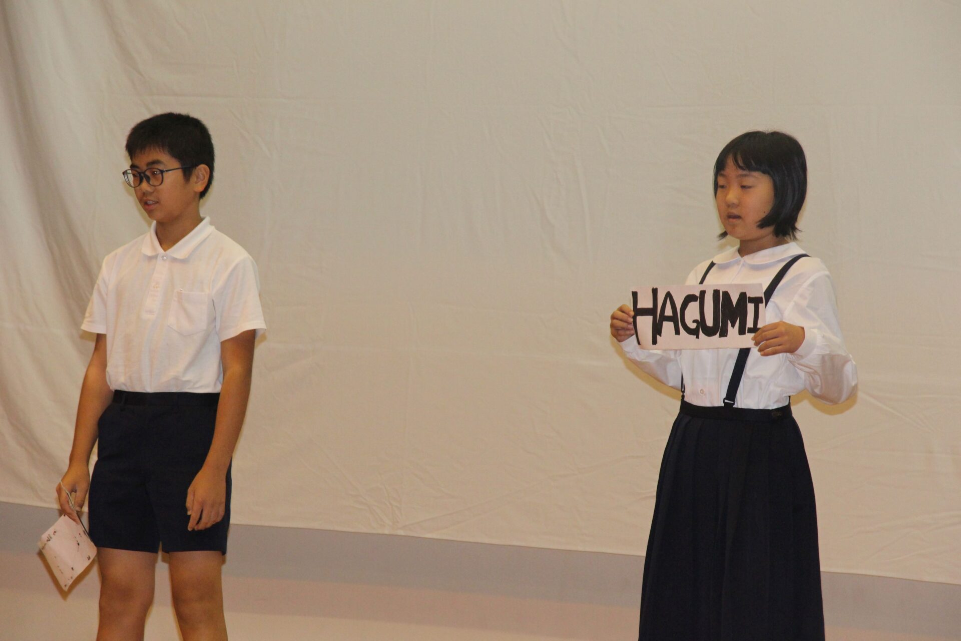 英語で自己紹介をしたり,鹿児島弁のクイズを出題したりと観ている人たちを楽しませてくれました。