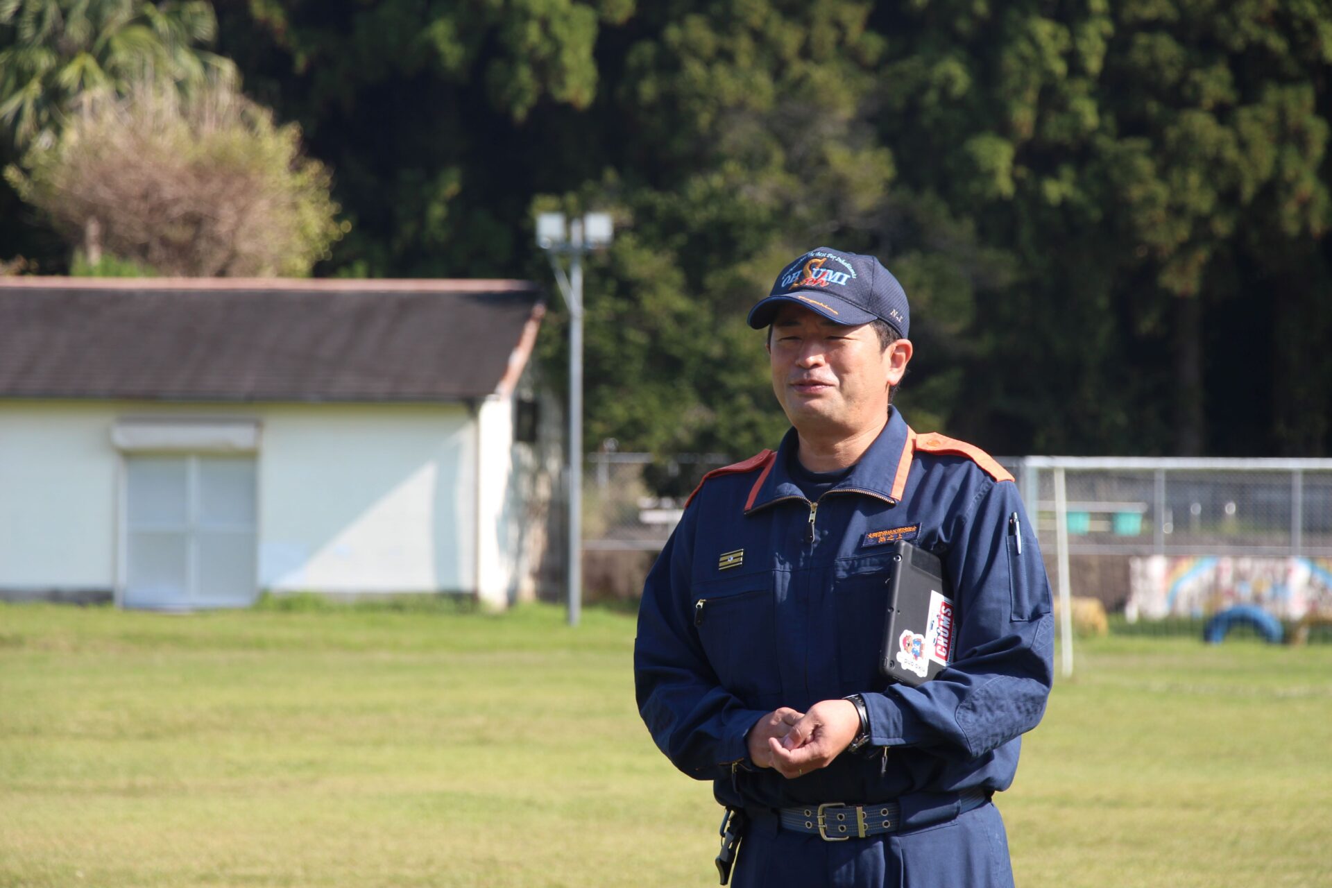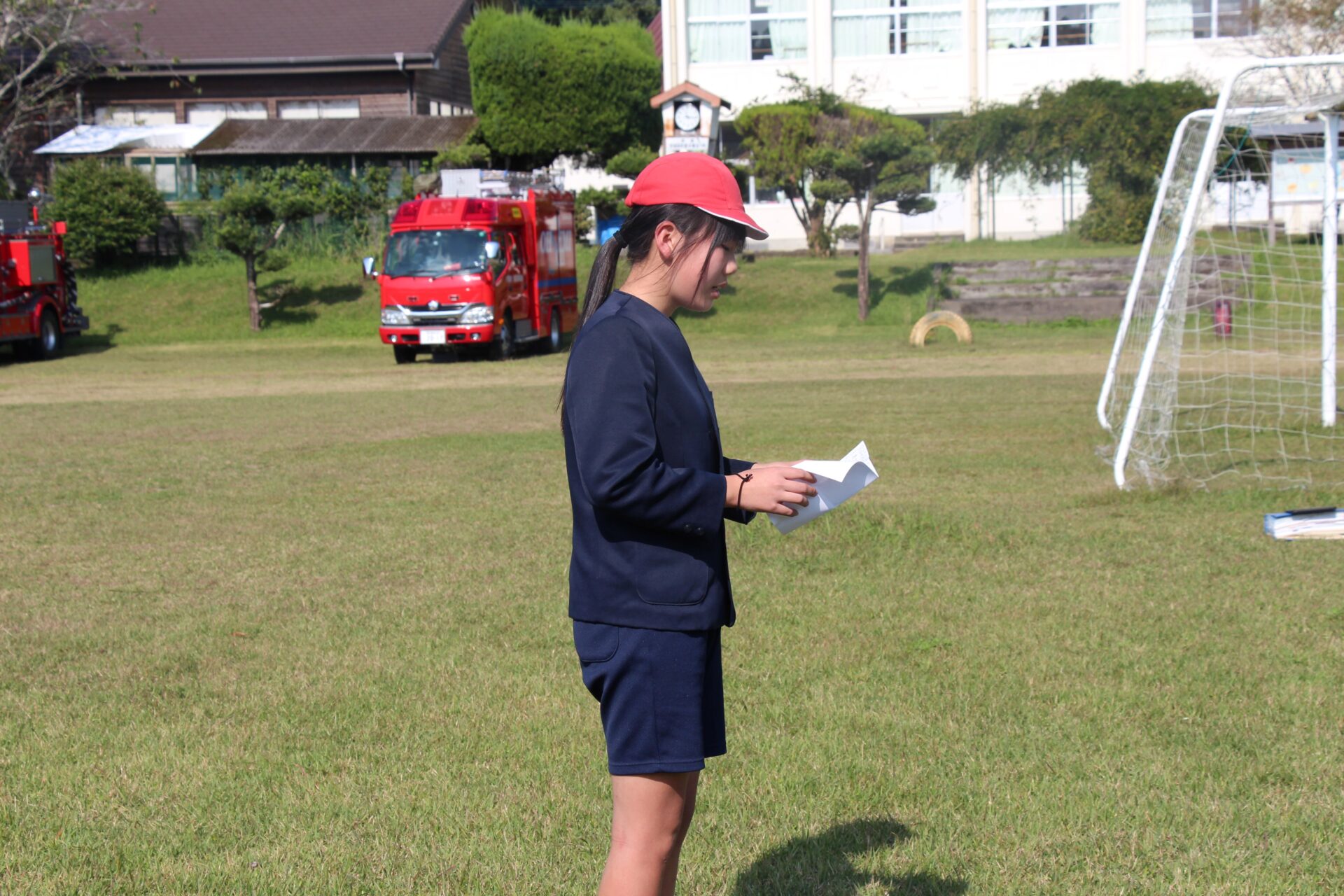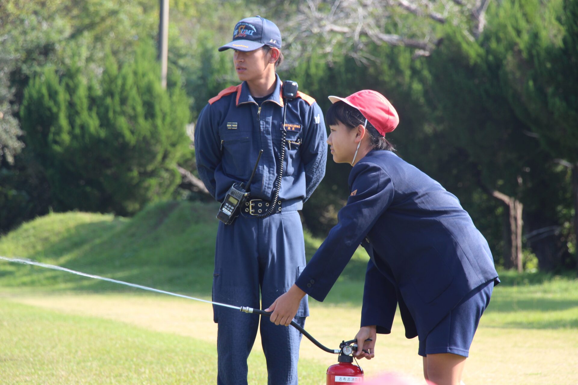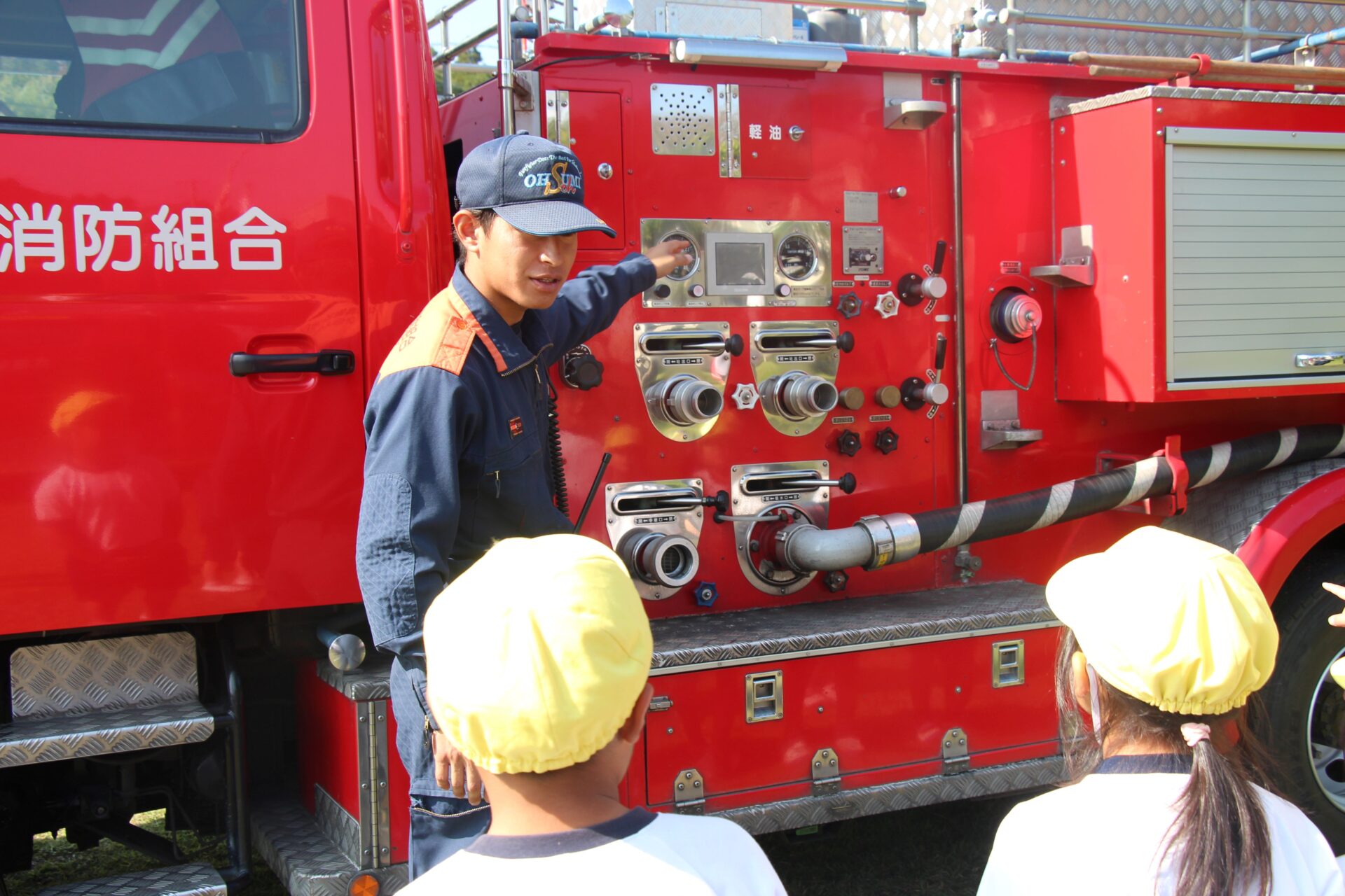訓練の後に,消防車の説明も。