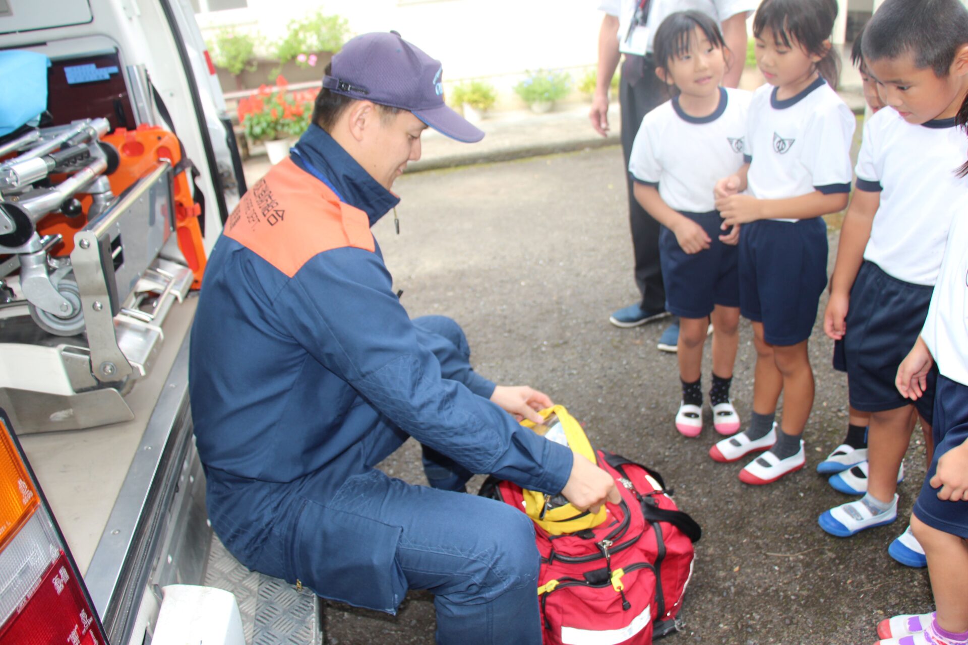 大崎分署の山下さんには救急車に乗せてある救急箱の中身について説明してもらいました。