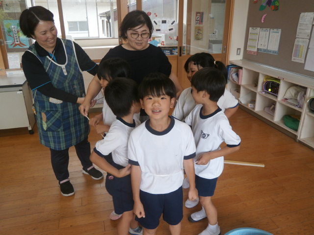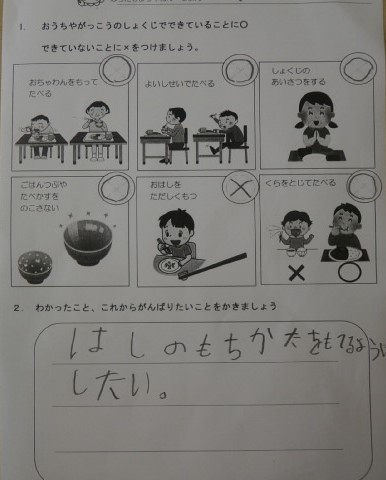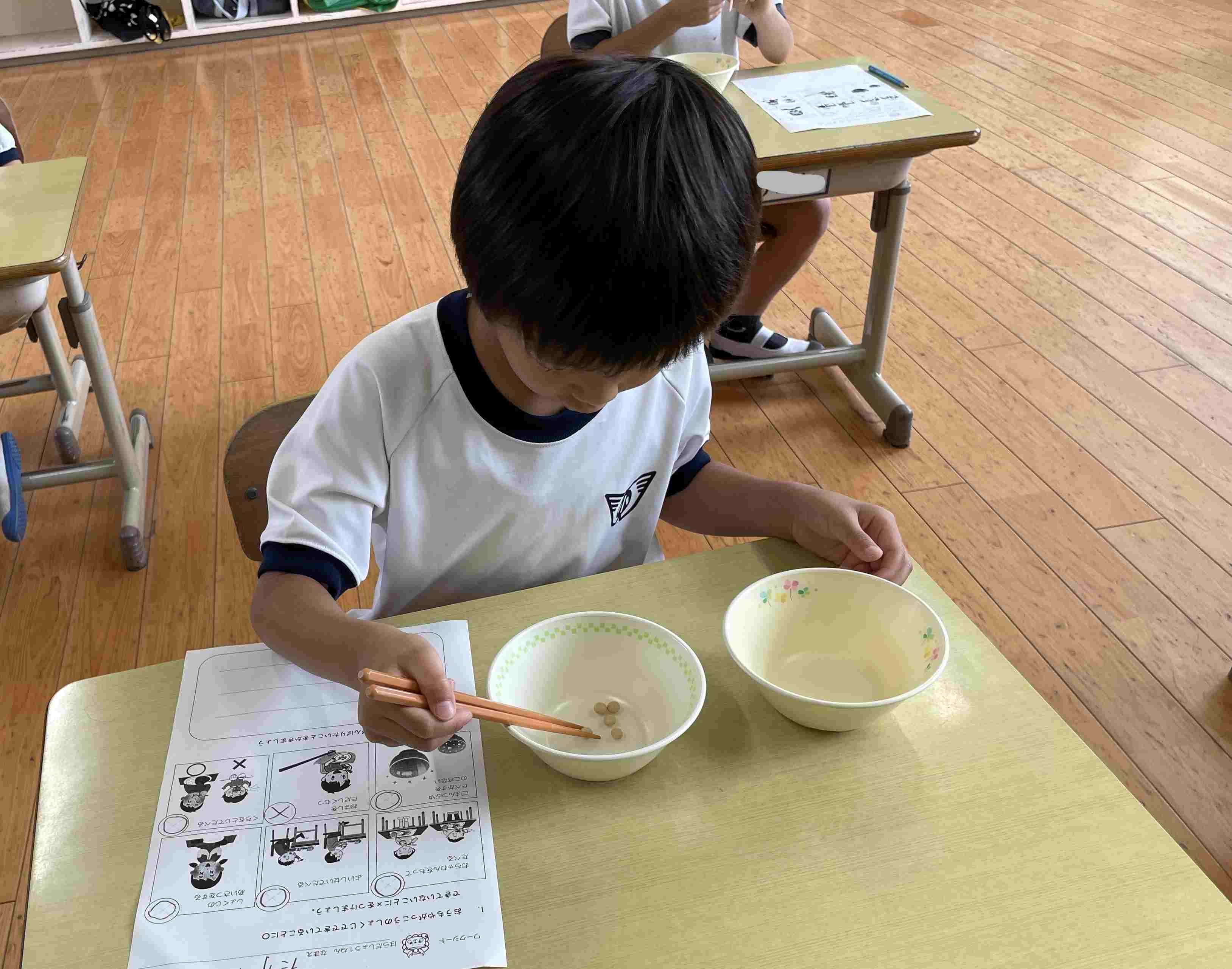給食(食事)のマナーも学びました。お皿やお箸をどのようにもつのか,実践です。