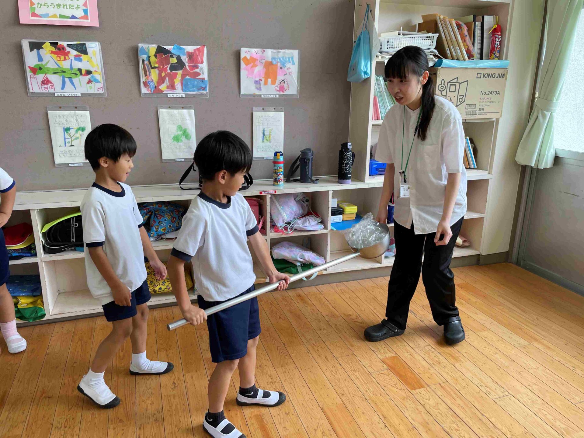 お鍋の大きさはこのくらい!!1年生全員入ってあまるぐらいです。