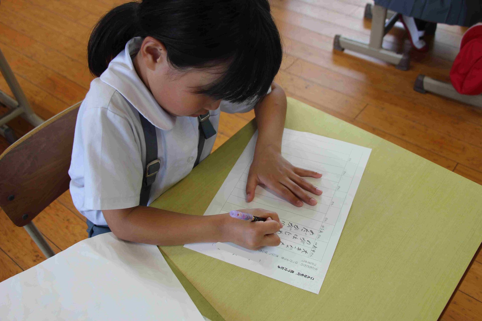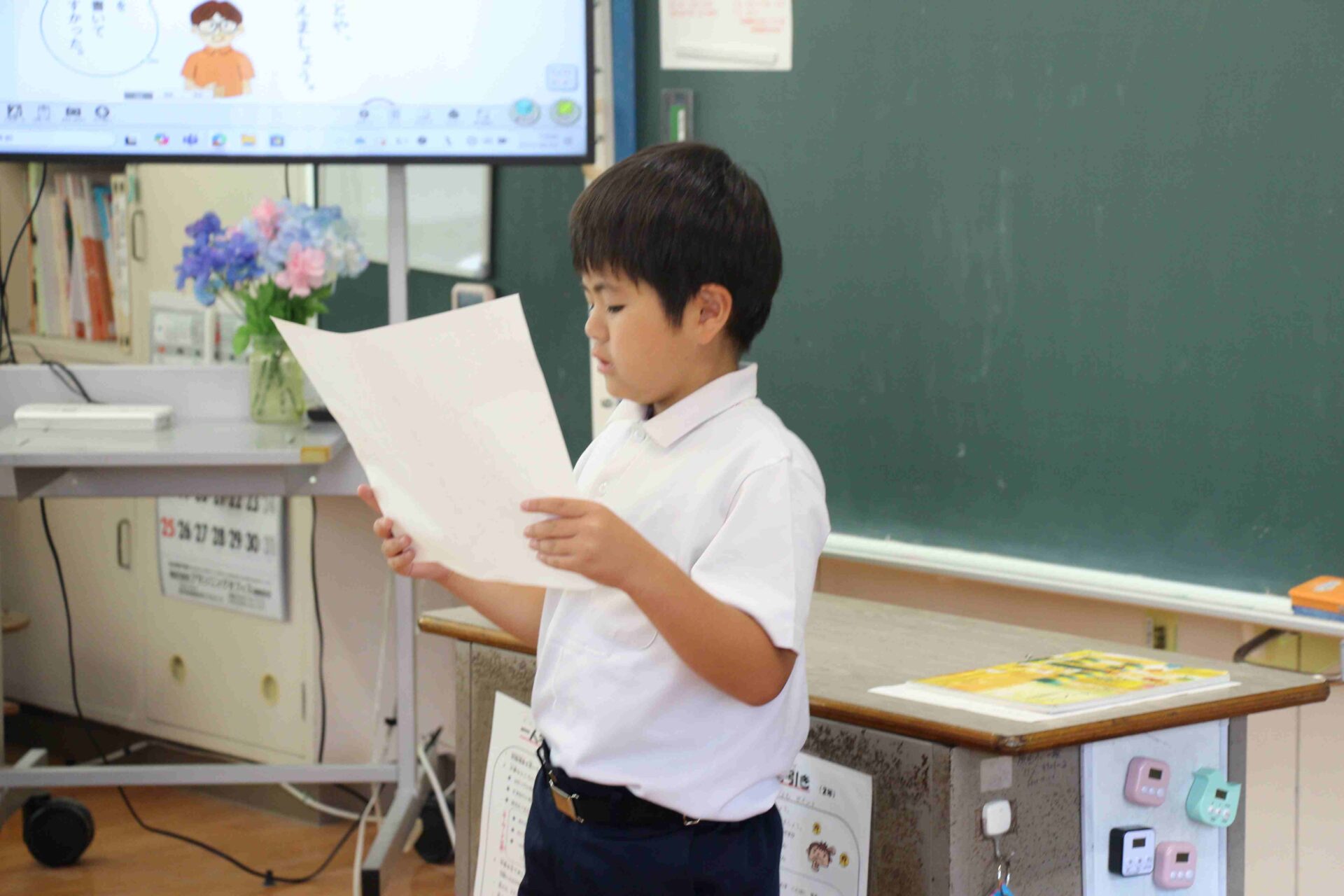 2年生も国語の学習です。「こんな もの,見つけたよ」学校の中で自分が見つけた「いいな。」「すてきだな。」と思うものについて,発表しました。仲間の発表を聞いて,初めて知ったことやわかりやすかったことをメモしていました。