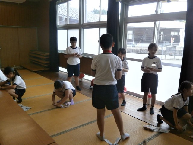 6月27日金曜日,3・4年生がふれあいサロンで,校区の高齢者の方々と交流しました。最初に自己紹介。名前と祖父母の名前を述べました。