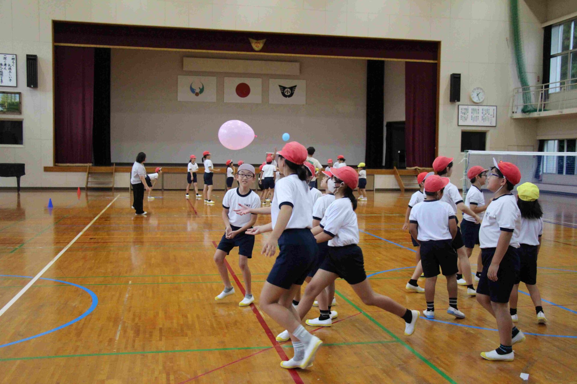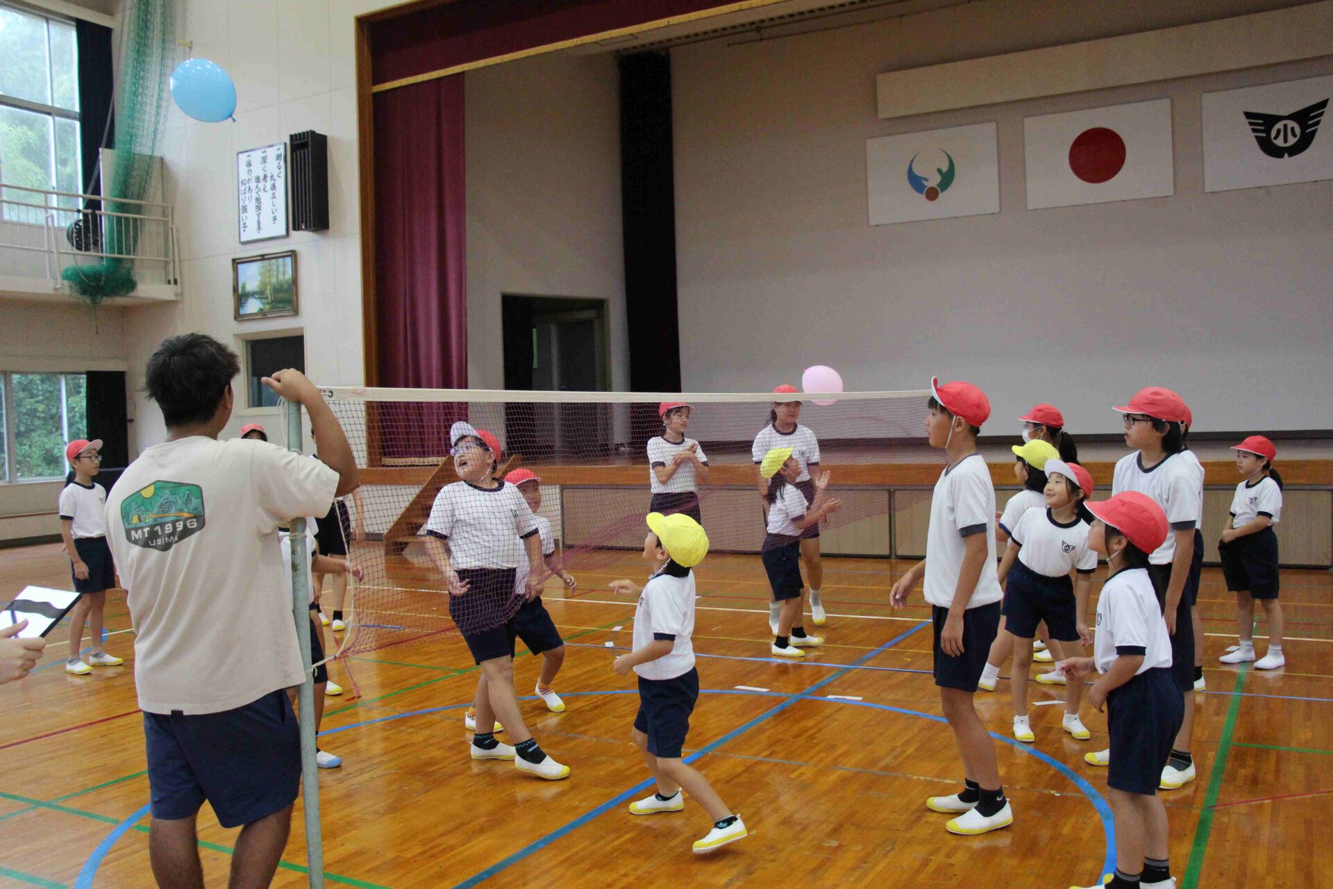 フレンドリータイム 作成者 haradasyou_admin公開日 2025年10月1日 9月24日水曜日の昼休み、フレンドリータイムがありました。フレンドリーグループで仲良く遊ぶ日です。総務体育委員会が企画し、今回は風船バレーをすることになりました。 フレンドリーグループは4班あります。総当たり戦で行いました。 思い通りに動いてくれない風船を、追いかけて交流を深めていました。 一方、高学年にとっては課題も残るフレンドリータイムでした。下学年のためにどのように動いたらよいのか、考えるきっかけになりました。