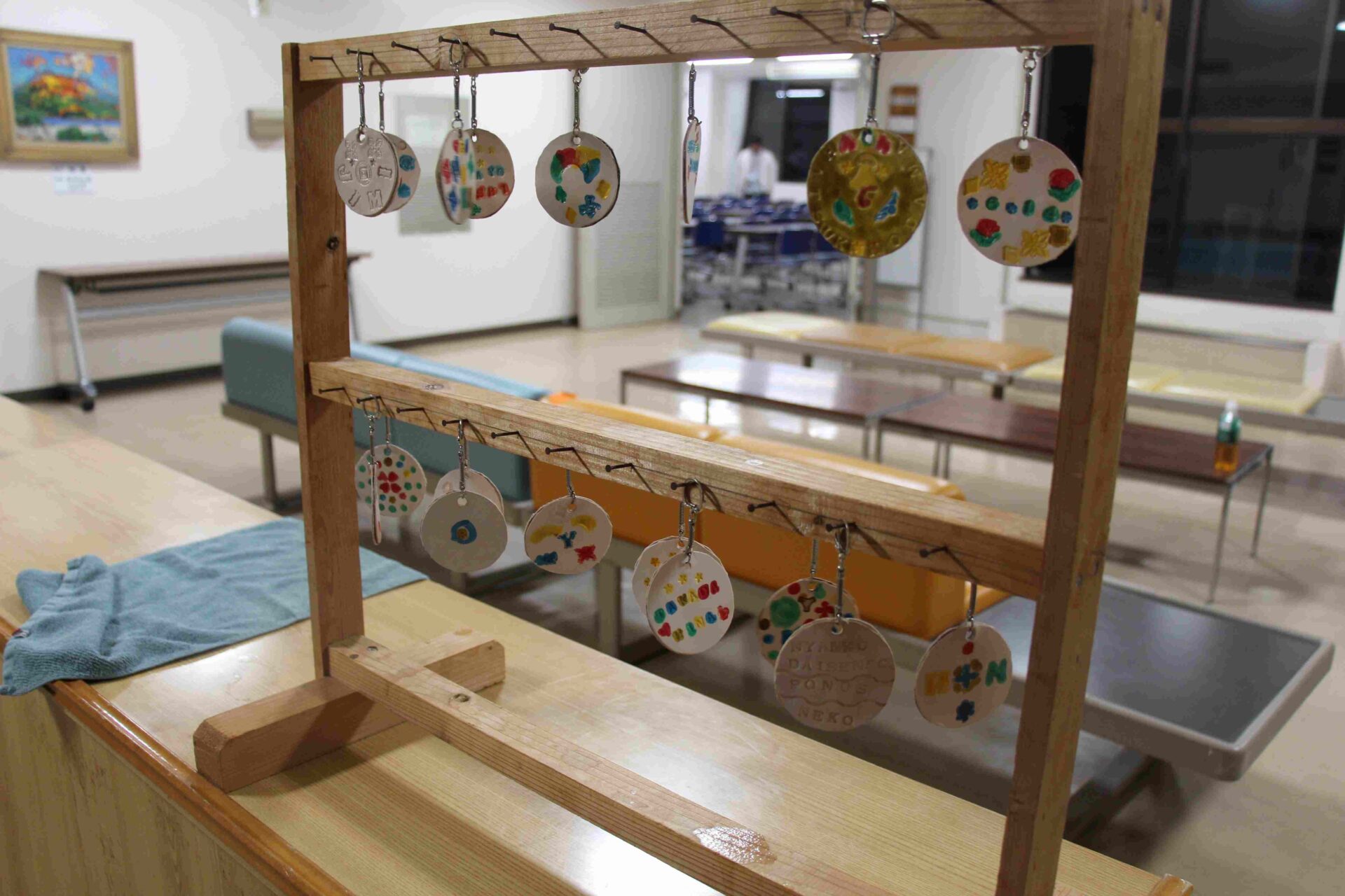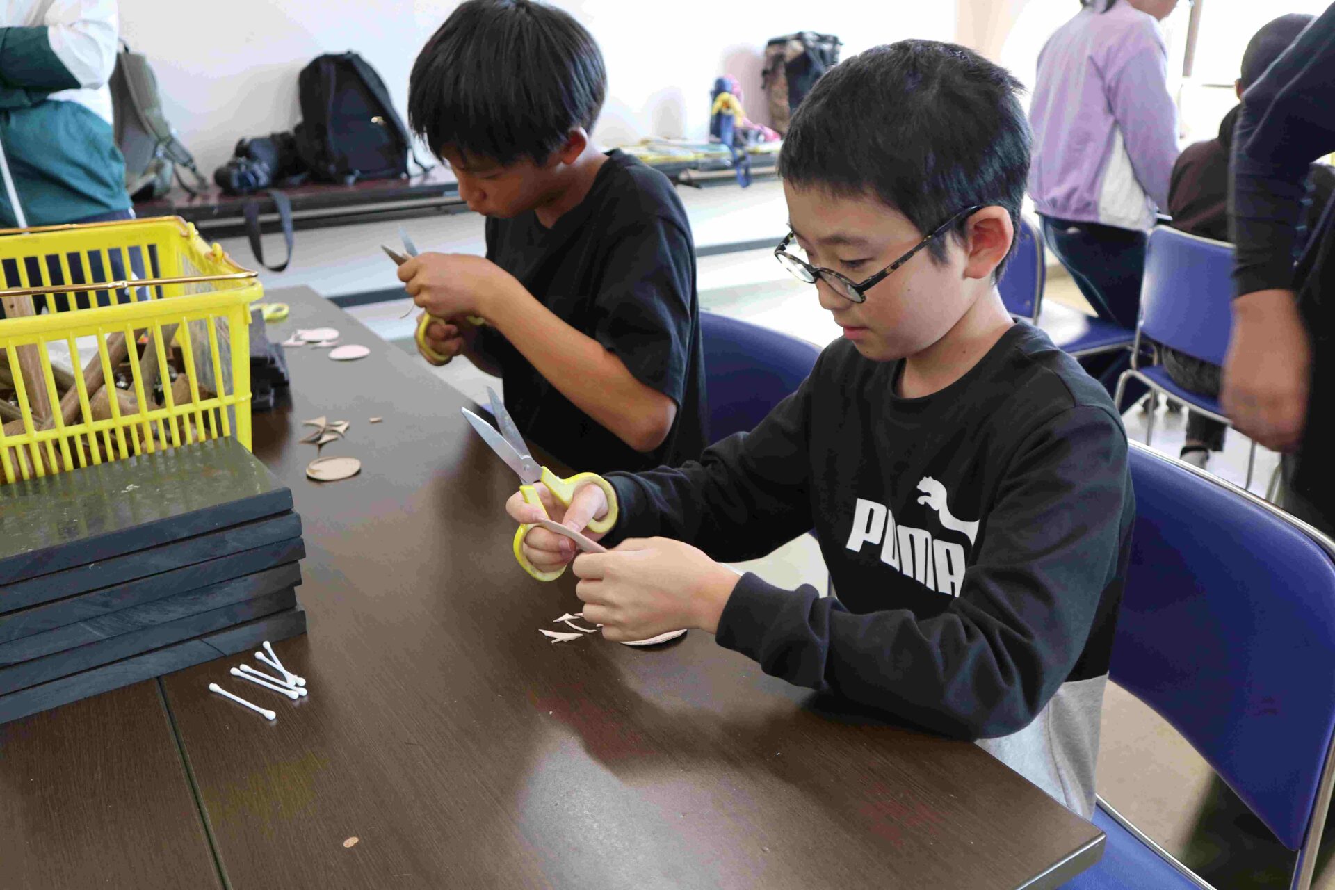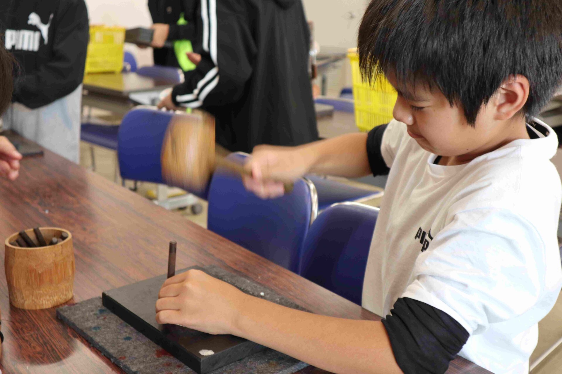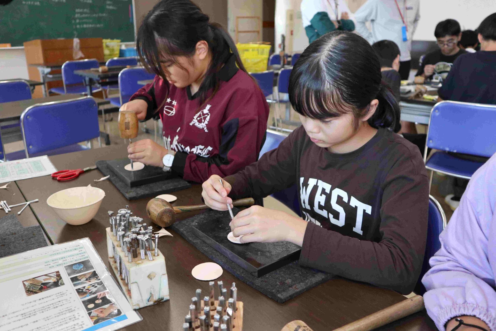 昼の2つめの活動は,革細工です。作り方の説明を聞いてから,作りました。それぞれデザインを考えて作っていました。