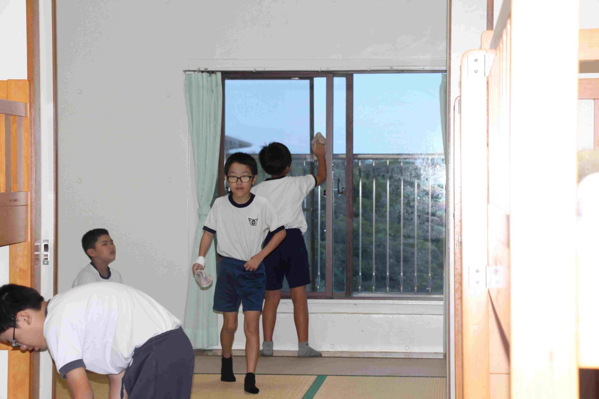 朝6時に起床した子どもたちは,シーツや布団をたたみ,掃除にとりかかりました。