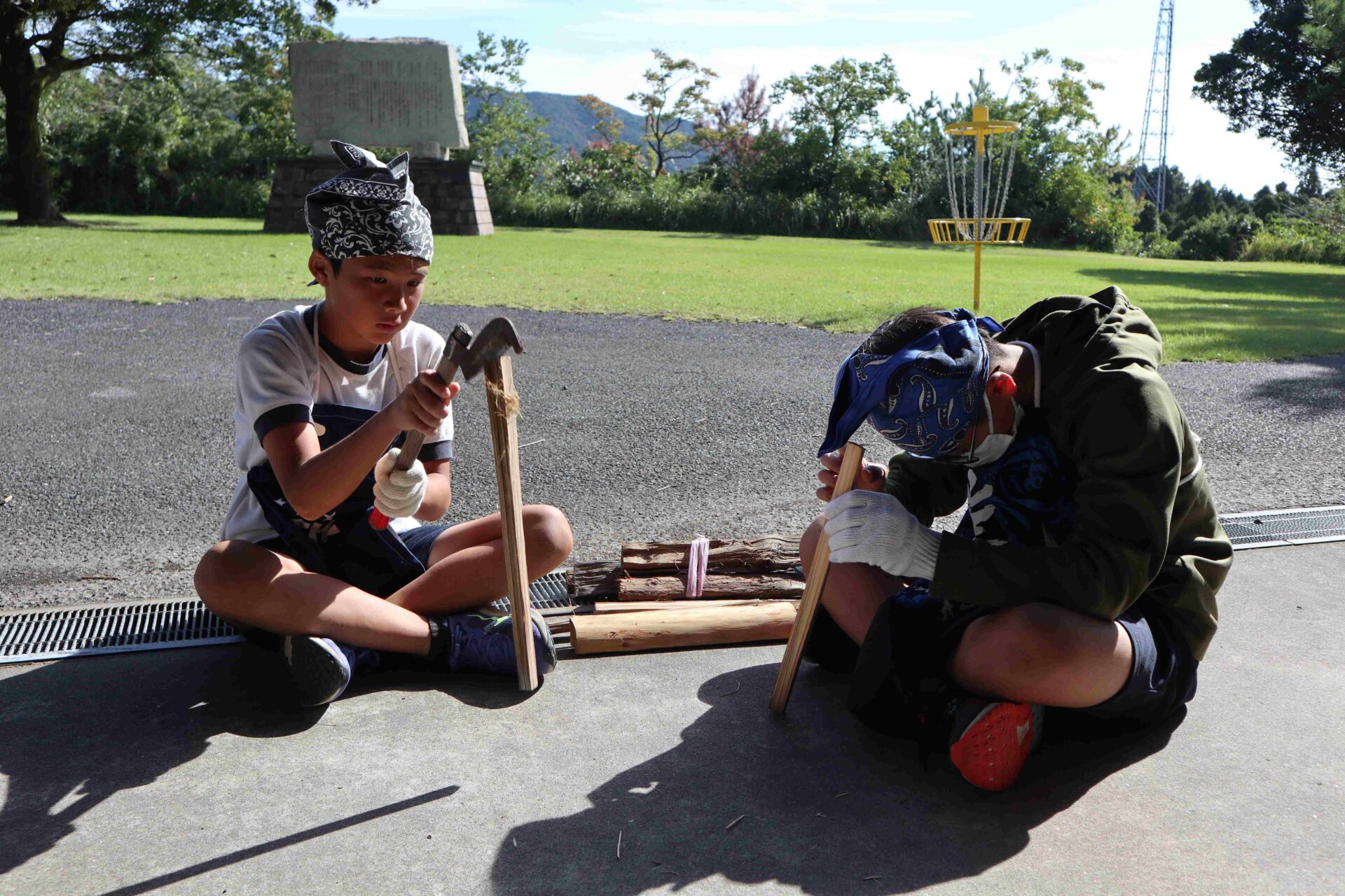 説明を聞き,薪係と調理係に別れて作業を始めました。
