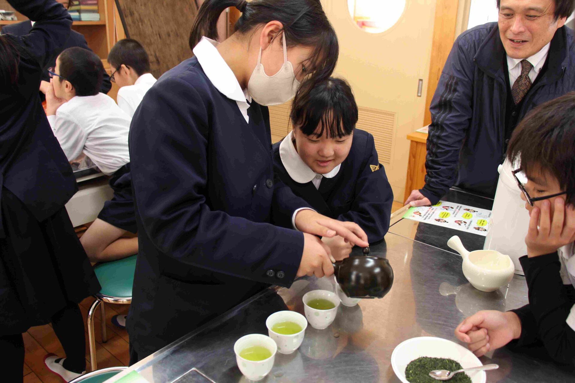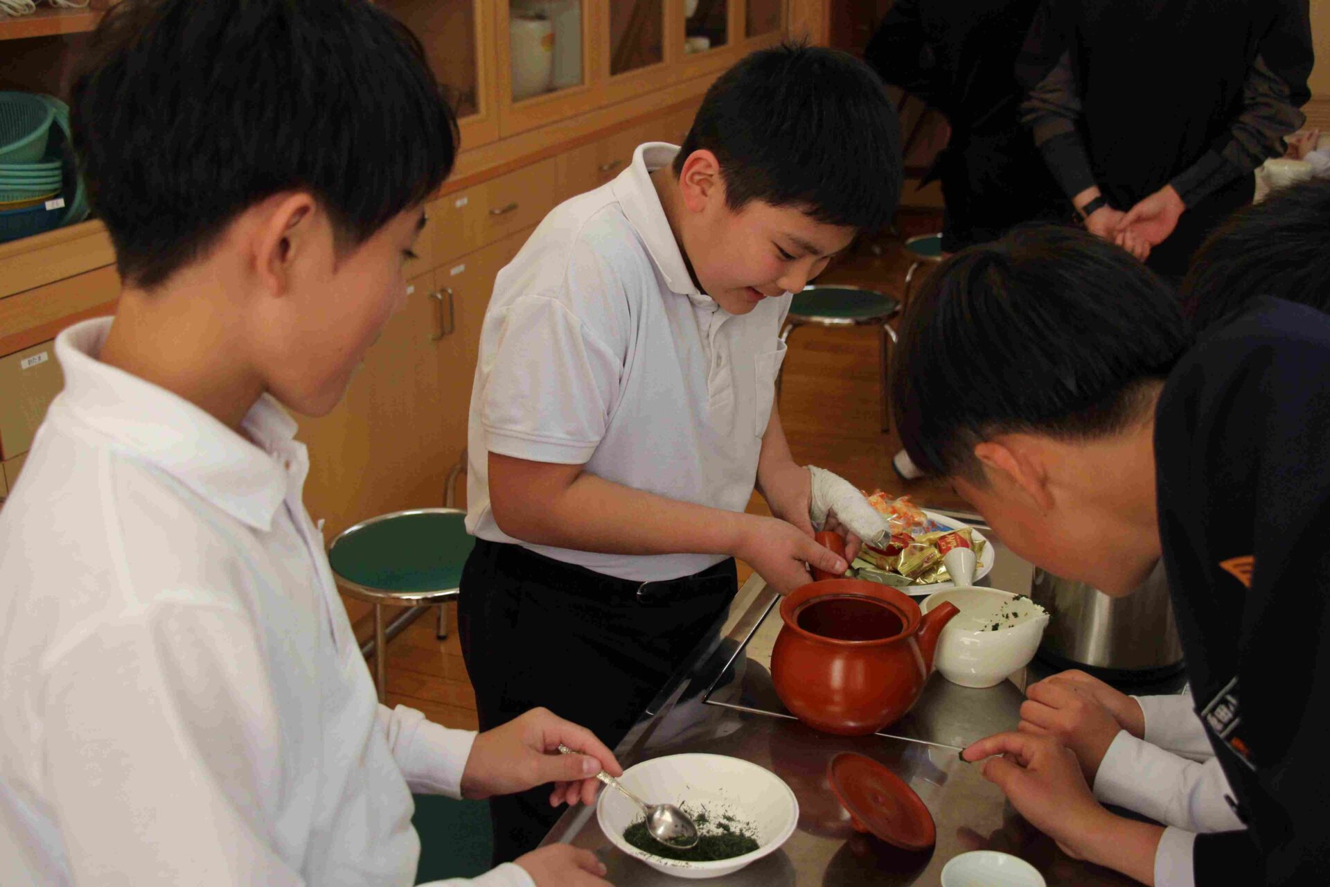 教わって入れたお茶は,最初と比べると,とてもおいしかったようです。