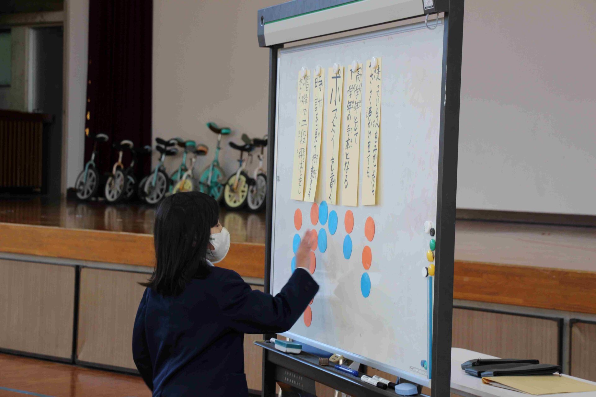 次に,1学期の第1回児童総会で決まったことの反省と,進級に向けたワンアクションです。