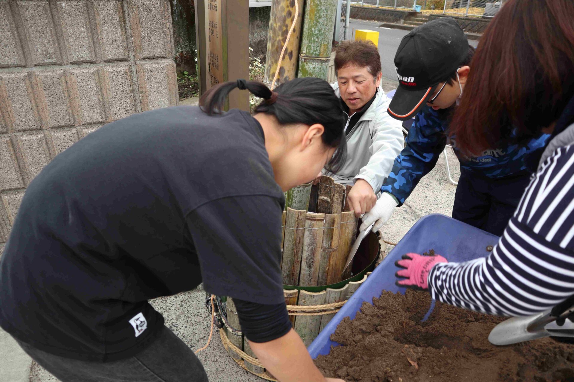 フレンドリーグループに分かれ,箱の中に入っている食材を当てるゲームからスタートです。手で触れた感覚のみで考えます。