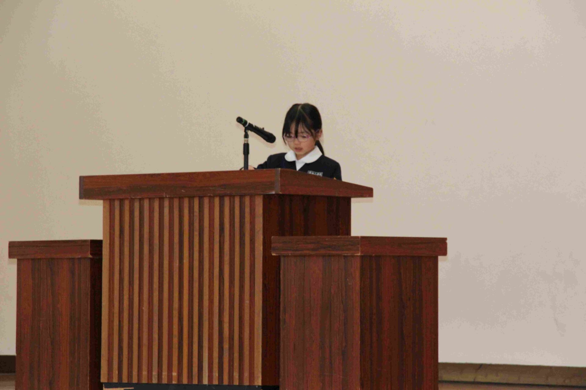 3年生の児童代表が,2学期は総務体育委員会の仕事でがんばったこと,3学期は一輪車に乗れるようになりたいと発表しました。