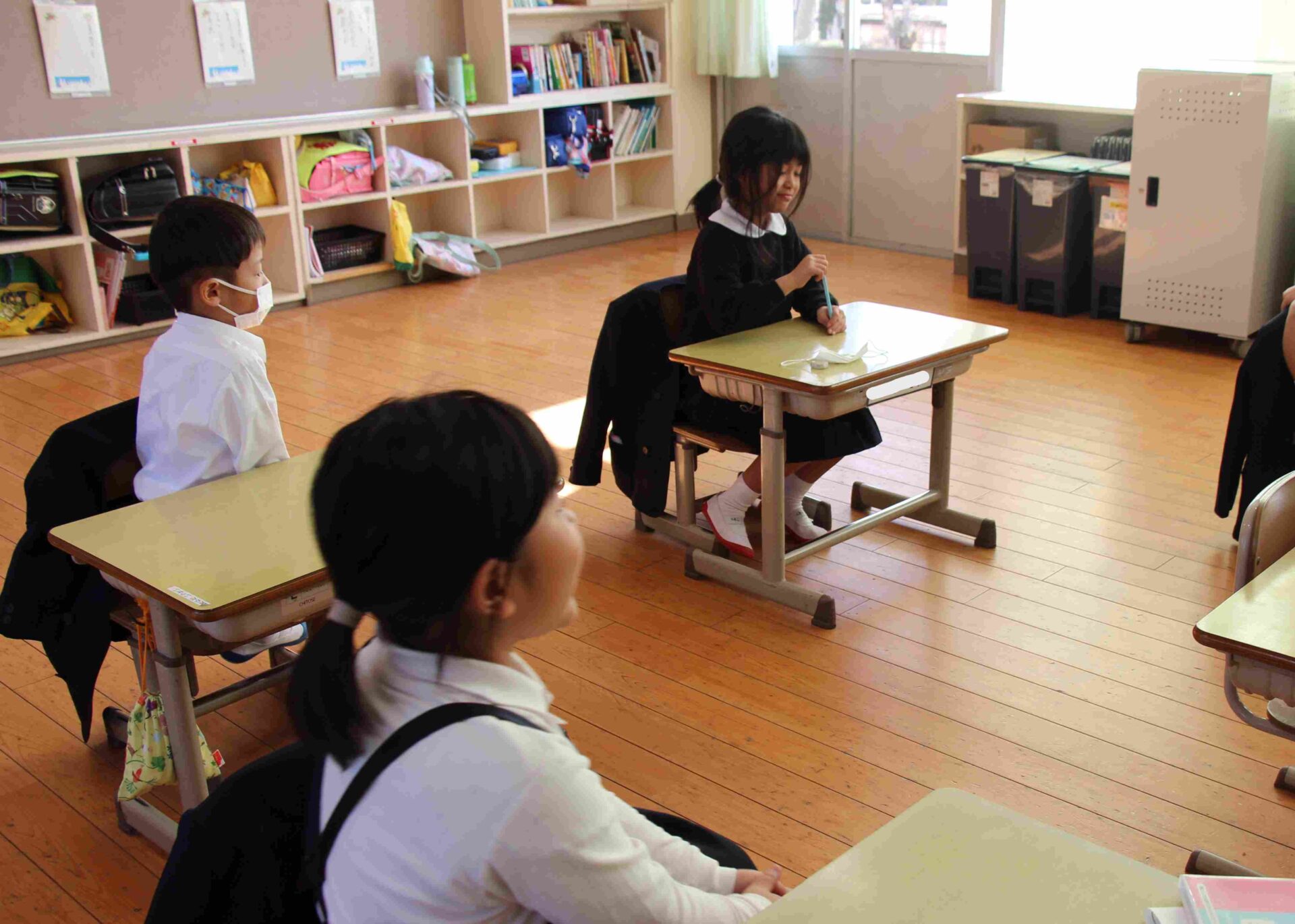 初日,2年生は少し緊張した顔をしていました。徐々に慣れて,自分たちで学習を進められるといいです。来年からの本格的な学習に生かせるように,先生たちも授業の準備をがんばっています。