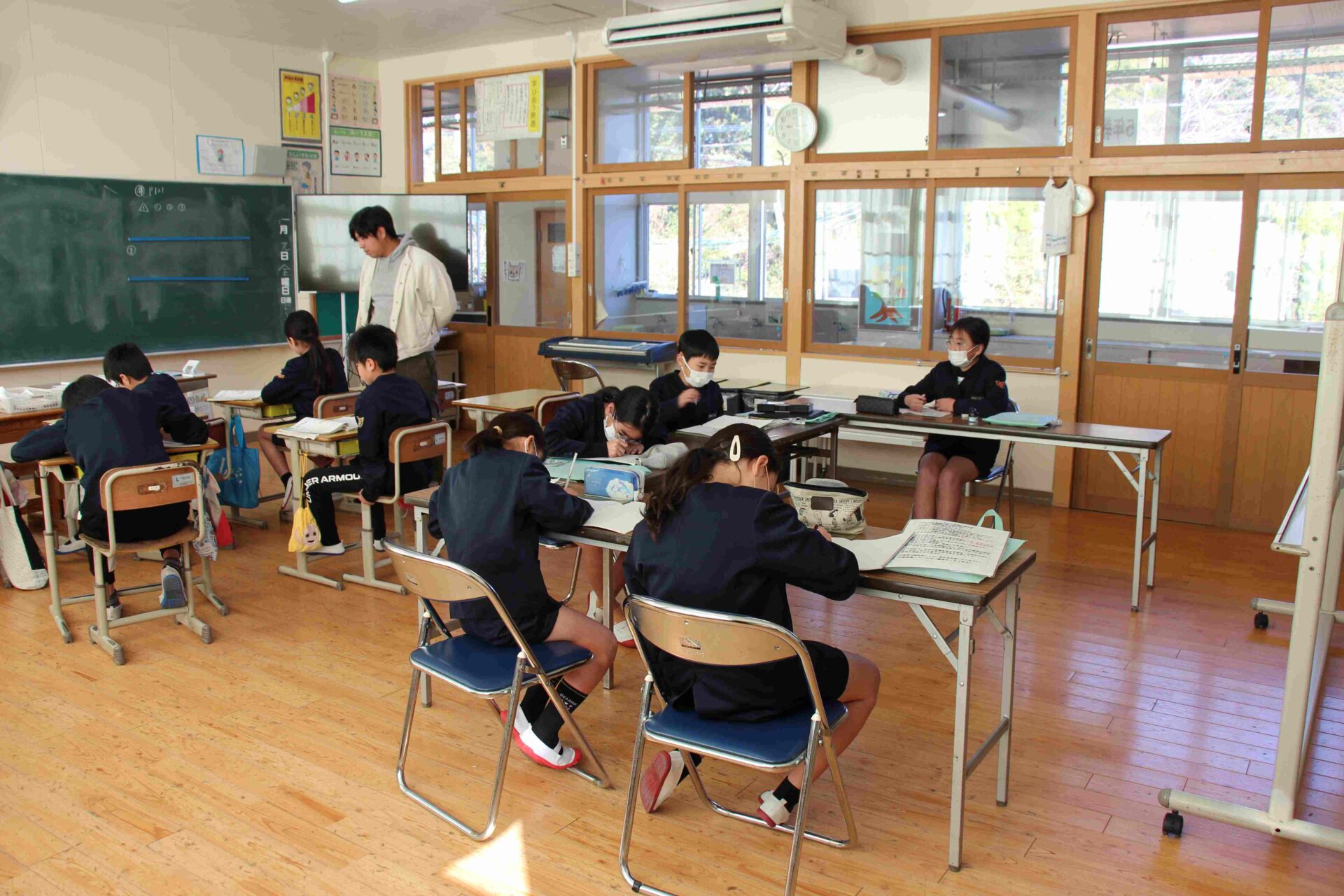 2・3年生は,3・4年生の先生が。4・5年生は5年生の先生が授業を行います。