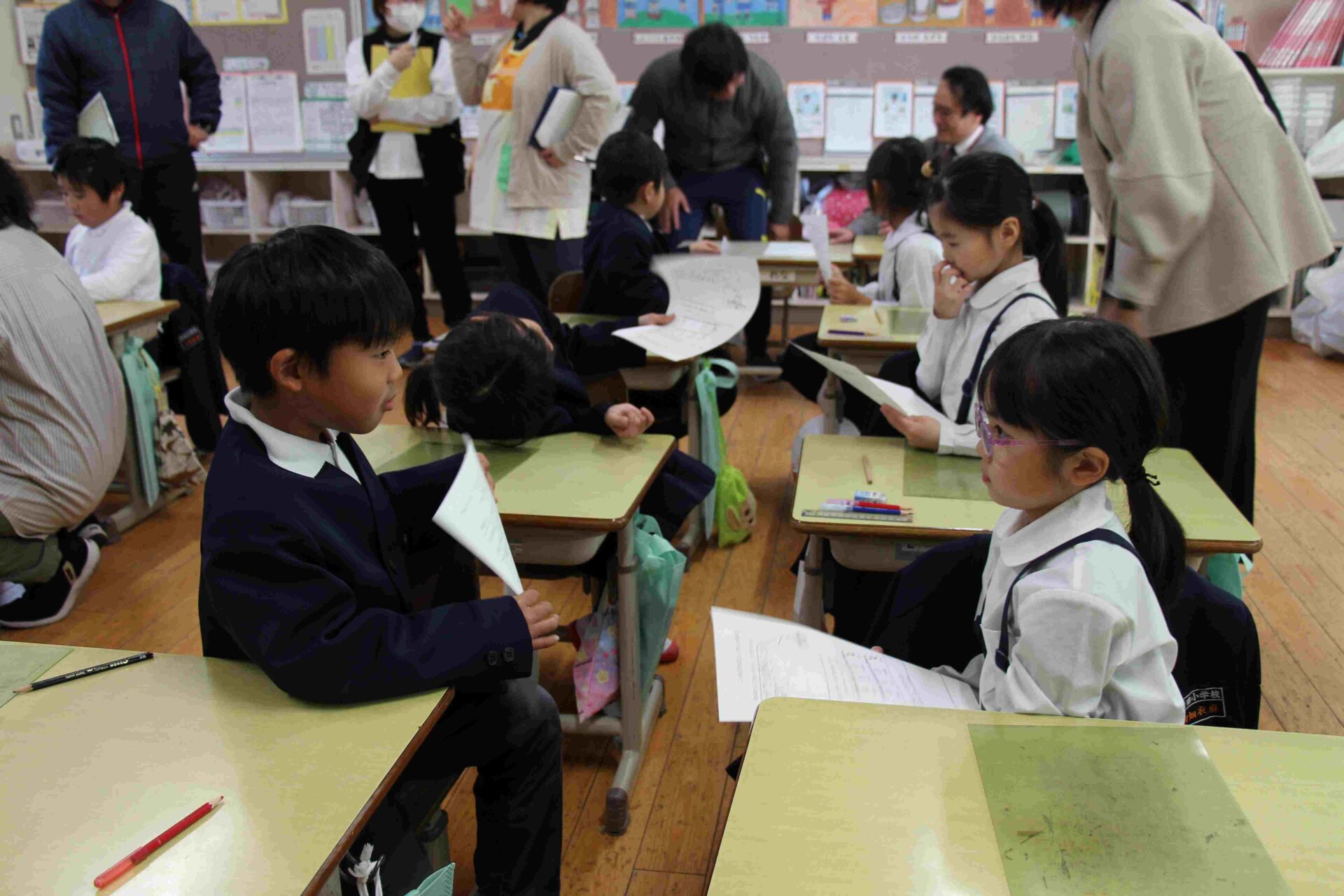 原田小は,来年度から3・4年生と5・6年生は複式学級になります。そこで,2年生には今のうちから少しでも複式学級での学習を体験してもらおうと,3学期は算数で複式指導をすることにしました。