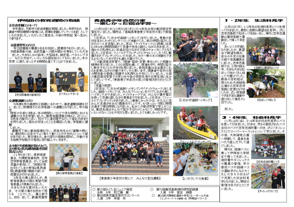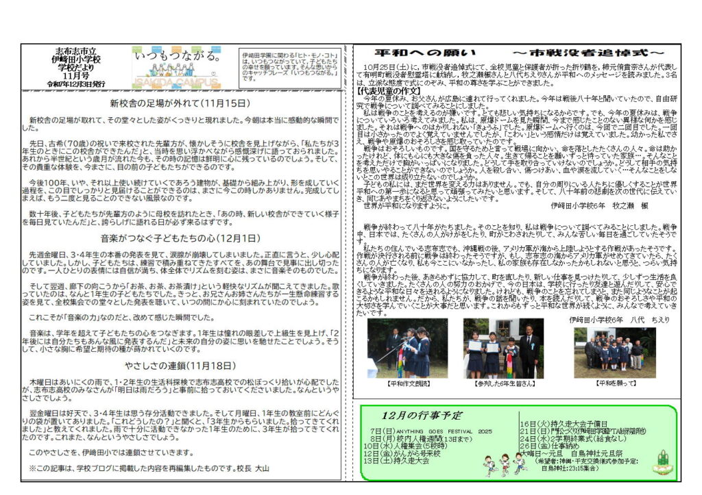 私は、自分の考えと行動を深く恥じるとともに、その児童に心から感謝と尊敬の念を抱きました。こうした自主的で責任感のある行動が、伊﨑田小学校を支えてくれているのだと強く実感せずにはいられませんでした。次からは、その児童の姿勢を見習い、率先して行動する大人でありたいと思います。