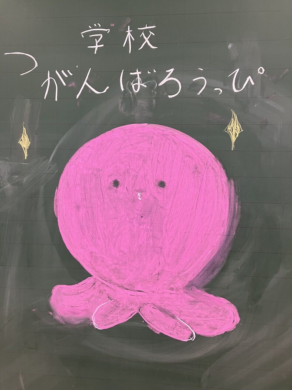 今朝,6年教室に主体的な活動がありました。黒板アートです。私は,こういう活動が大好きです。「たこぴー」という名前なんだそうです。