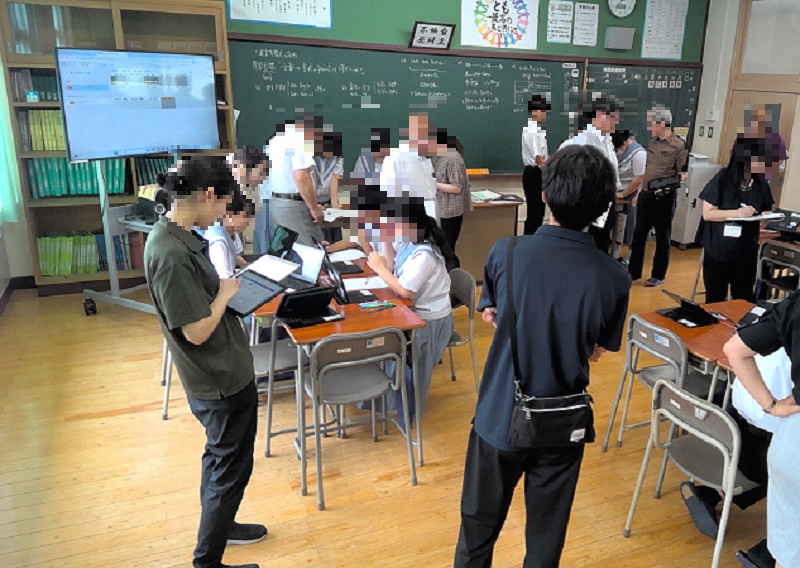 具体的には、参観者が、気づいたことや感じたことをオンラインツールに直接入力していきました。これにより、より多くの職員が多様な視点から授業を分析し、意見を共有することができていました。