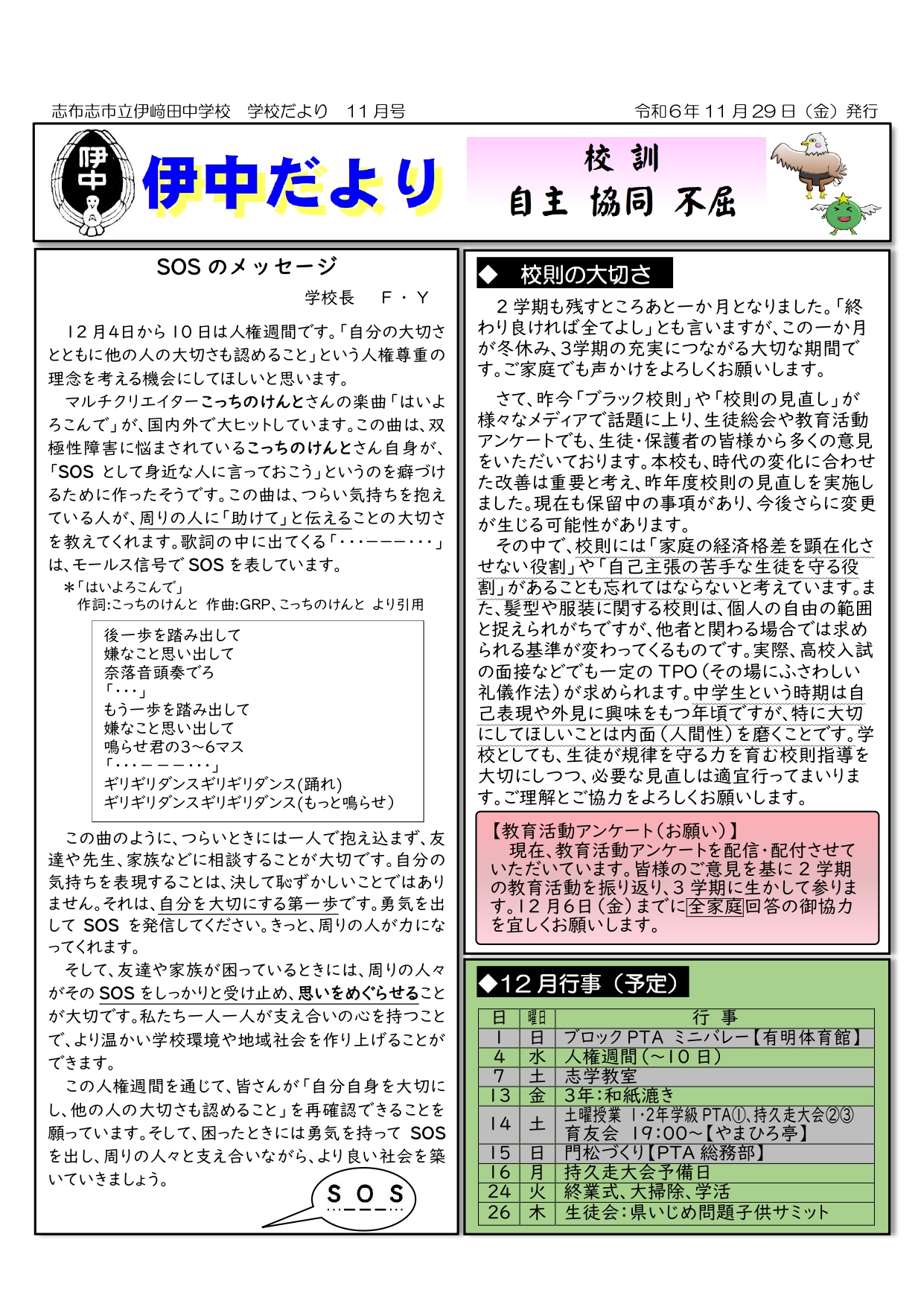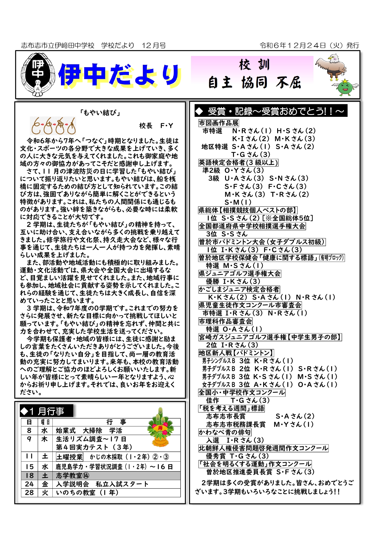保護者の方の温かい気持ちが、生徒たちの背中をそっと押してくれることでしょう。Sさんに心から感謝申し上げます。本当にありがとうございました。
