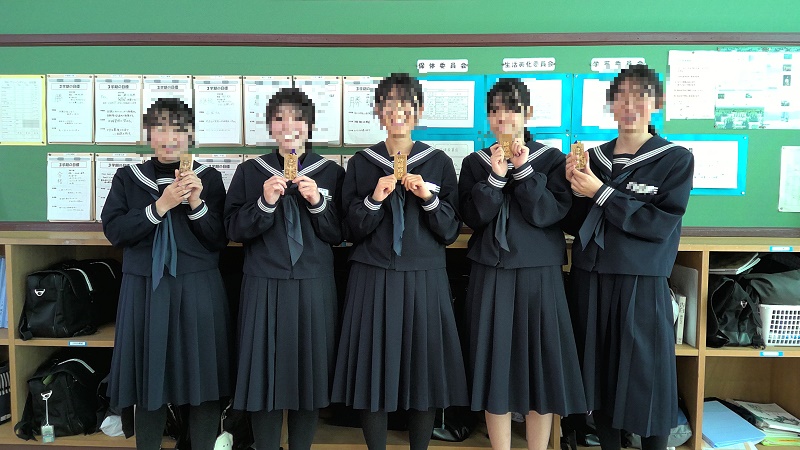 これを受け取った生徒たちは、手のひらでそっと触れながら「がんばるぞ!」と気合いを入れていました。