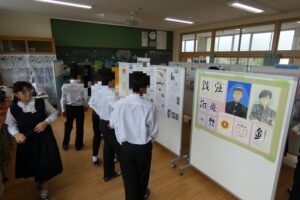 現在、県民週間中で、展示物は明日まで掲示しています。授業の様子も合わせてご覧いただけますので、ぜひ伊﨑田中学校を訪れてみてください。