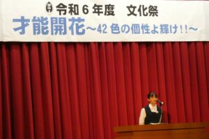 今年の文化祭は、テーマ通り「42色の個性が輝く」素晴らしい一日となりました。約80人の方々が来場してくださり、生徒たちの発表や展示を通して、多くの感動や心温まる時間を提供できたと思います。人前で発表することは大変勇気がいるものです。しかし、生徒たちは練習の成果を発揮し、堂々と自分たちの作品や想いを表現できていました。この経験が、今後の自信につながることを願っています。