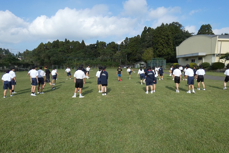 本校では12月に持久走大会が行われます。その持久走大会に向けて、今年度夏休みにもランニング教室に来ていただいた野村さんと安村さんに、今度は全校生徒を対象とした指導に来ていただきました。