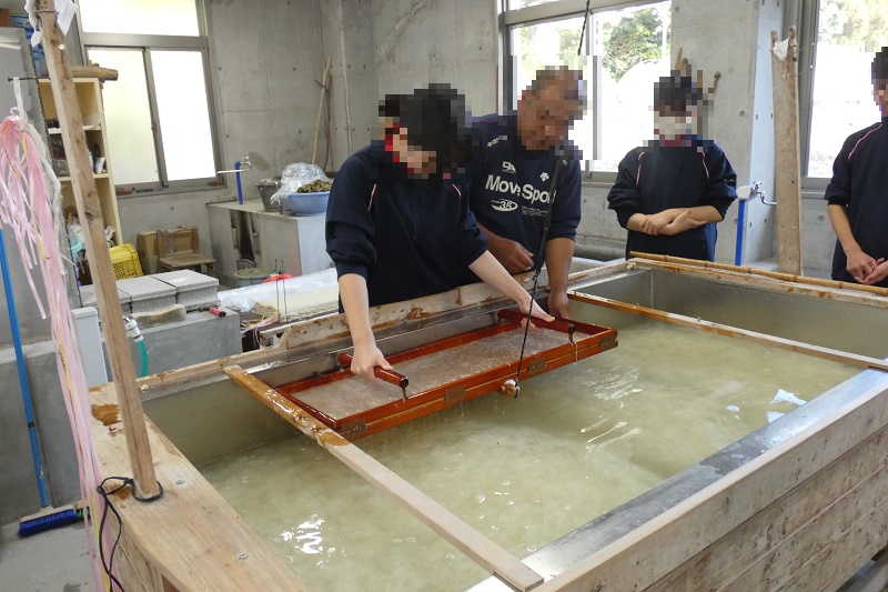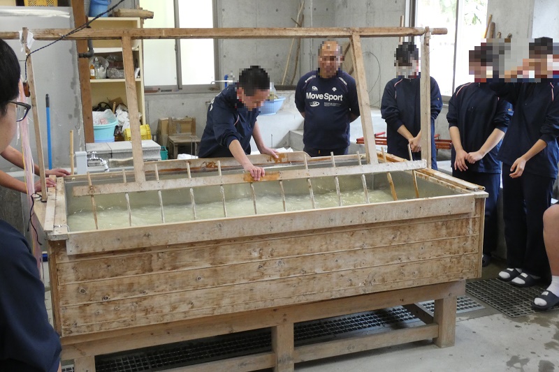 本校では毎年3年生が自分たちで漉いた和紙で卒業証書を作成しています。この和紙を漉く作業場所も学校の敷地内にあるんですよ。すごくないですか?