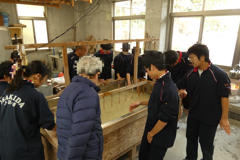 12月13日(金)3年生が伊﨑田和紙保存会の國重さんによるご指導のもと、和紙漉き作業を行いました。