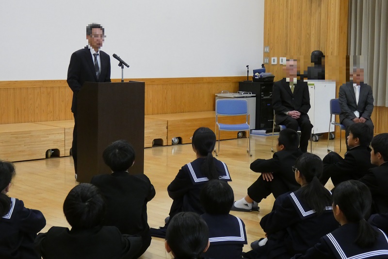 春の訪れを感じる今日この頃、伊﨑田中学校では3月25日に修了式と離任式が行われました。