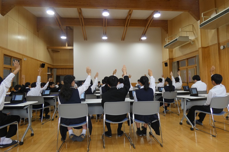 5月10日(土)、今年度初の土曜授業が実施されました。この日は普段とは異なる3時間。1時間目は生徒総会で活発な意見が交わされ、2時間目は地元の伝統文化に触れる伊崎田和紙講話、3時間目は生徒たちが主体的に取り組む調べ学習(総合)が行われました。さらに、3時間目の時間帯には、保護者の皆様を対象とした情報モラル教室も同時開催されました。