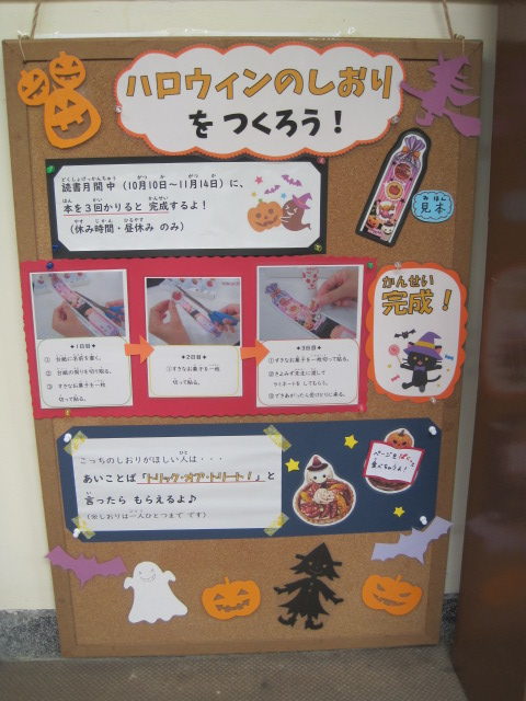 はい,みなさん。すてきなしおりが作れますよ。ぜひ,図書館へおいでくださいませ。