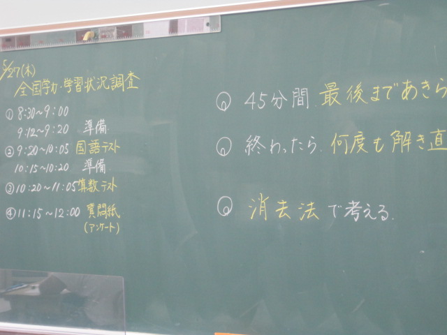 学習の成果を~全国学力・学習状況調査~ 作成者 matsuyamasyou_admin公開日 2021年5月27日 2年ぶりの全国学力・学習状況調査が行われました。6年生は,それぞれの学習の成果を発揮しようと最後まで粘り強く取り組んでいました。この結果を受けて,子供たちは次の目標について,指導者は,指導法の改善に向けて取り組んでいきます。