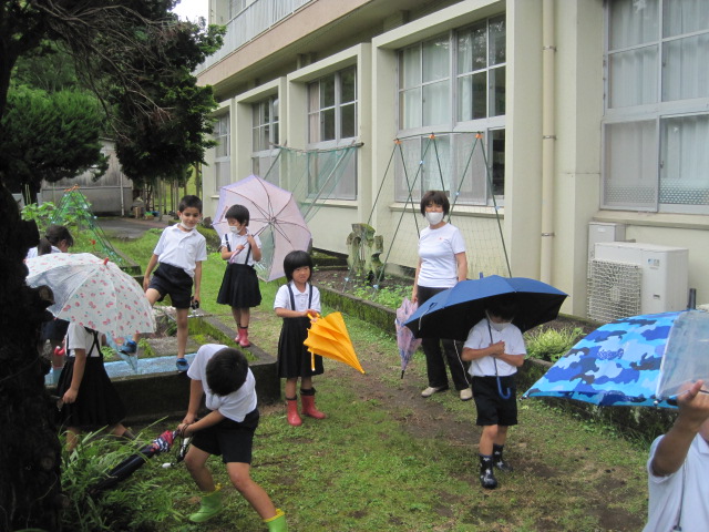 かたつむり どこだ 作成者 matsuyamasyou_admin公開日 2021年6月5日 1年生が傘を差して学校の周りを散策していました。「どうしたの」と尋ねてみると,「かたつむりはどこにいますか」と質問されました。「葉っぱにいると思うよ」と答えると一生懸命みんなで探していました。見つかりましたか。