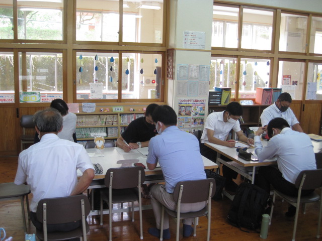 昨年度は実施できなかった小中連携合同研修会を本年度は開くことができました。感染症予防の観点から,一つの会場に全員が集まることはせずに,松山中校区4校に分散して分科会という形で行いました。松山小は,保健部会を行いました。新型コロナウイルス感染症対策やメディアとの付き合い方をどのようにさせるかということが話題になりました。小学校と中学校の9年間を見通して共通実践することも決定しました。それは,松山中校区で取り組んでいる家庭学習強調週間の初日を「ノーメディアデー」にして,タブレットやスマホの使い方のルール作りを行うということです。4校で共通実践できるよう連携していきます。