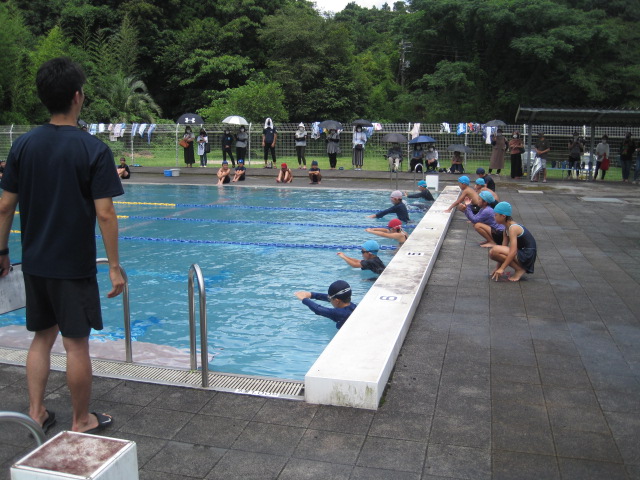 水泳発表会は,上学年と下学年に分かれてこれまでの水泳学習の成果を発表しました。