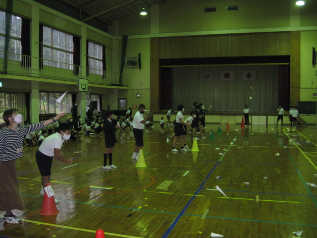 主体的な子供を育てる 作成者 matsuyamasyou_admin公開日 2021年10月27日 主体的な子供を育てていくことは,松山小学校の大きな目標の一つです。昨日は,二つの活動で主体的に活動する子供の様子が見られました。まずは,児童集会です。 総務委員会が,全校を縦割りにして,紙飛行機投げ大会を開きました。ルールの説明や進行などバタバタしていましたが,みんなが楽しめる集会になりました。 もう一つは,昼休みに5年生が中心になって行った全員遊びです。国語で話し合ったことをもとに全員遊びを開くことができました。このような経験を積み重ねていくことが大切ですね。