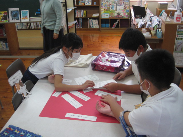 注文の多い料理店 作成者 matsuyamasyou_admin公開日 2021年11月12日 6年生が読書の時間に楽しい活動を行っていました。注文の多い料理店の挿絵を見ながら,文を並べていく活動でした。宮沢賢治の文を味わい,吟味しながらグループで話し合っていました。 1カ月の読書月間が明日までです。この期間に,多くの本にふれあうことができたでしょうか。
