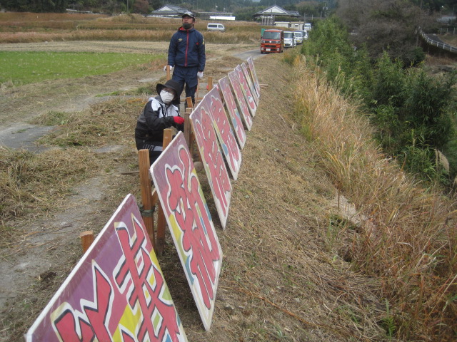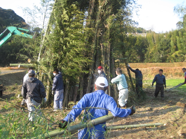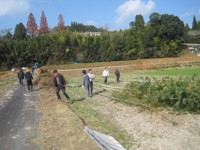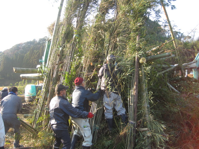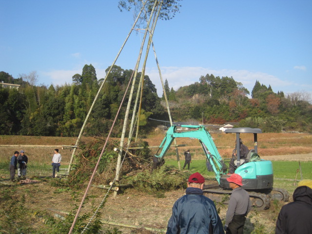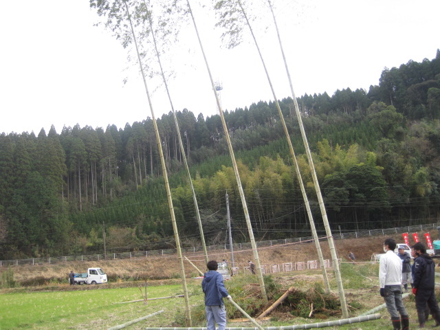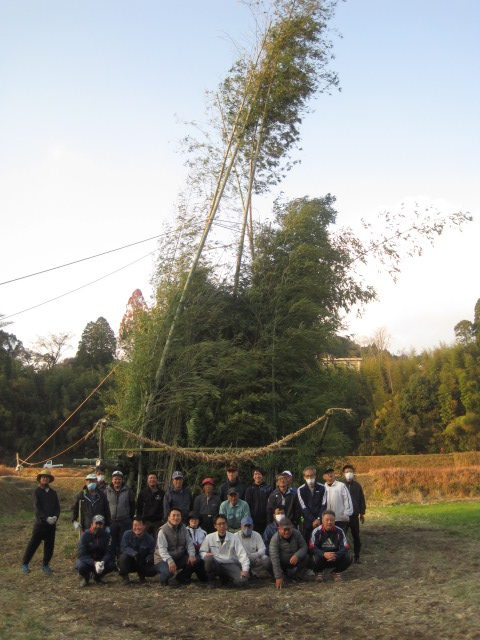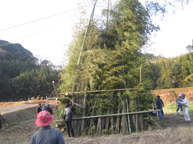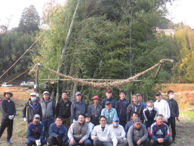 新年を迎える準備を~鬼火たき準備~ 作成者 matsuyamasyou_admin公開日 2021年12月13日 年明けに行われる鬼火たきの準備をしました。鬼火たき実行委員会のメンバーが中心となり,PTA保護者,地域の方々が総勢30人余り参加しました。 大きな竹を切り出すところから始まり,田んぼへの櫓設置,飾り付けをしました。大変大がかりな作業でしたが,トラックや重機など使用しながら準備を進めていきました。 準備に参加した皆様,大変ご苦労様でした。よい新年が迎えられそうです。