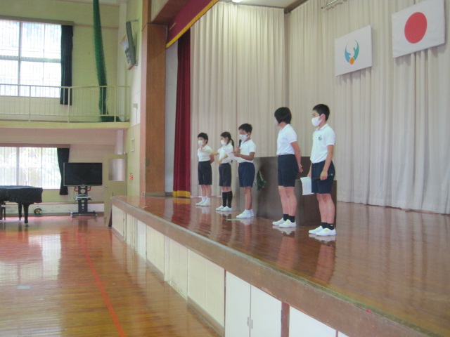 1年生を迎える会~70人の先輩が応援します~ 作成者 matsuyamasyou_admin公開日 2021年5月13日 1年生を迎える会がありました。総務委員会のメンバーが企画,計画,運営までがんばってくれました。レクリエーションやクイズ大会などで交流を深めることができました。 校長先生が,「1年生の後にはたくさんの応援してくれるお兄ちゃん,お姉ちゃんがいるよ。」と話してくれました。 1年生のみなさん,みんな応援していますよ。早く小学校になれてくださいね。