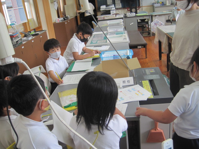 学校を探検しよう~1年生生活科~ 作成者 matsuyamasyou_admin公開日 2021年5月26日 1年生が学校を探検していました。学校中の教室に入ってそこはどんな場所なのか,どんなものがあるのか,誰がいるのか調べていました。習ったばかりの平仮名を使って作ったそれぞれの名刺をもらいました。ありがとう,1年生のみなさん。