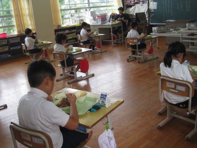 松山小の新しい生活様式~給食編~ 作成者 matsuyamasyou_admin公開日 2021年9月7日 新型コロナウイルス感染症への対策として,給食についても工夫しています。お皿によそうのは職員,お盆の消毒から配膳まではそれぞれの児童が自分のものだけをするようにしました。ソーシャルディスタンスの確保,食事中は黙食を徹底しています。