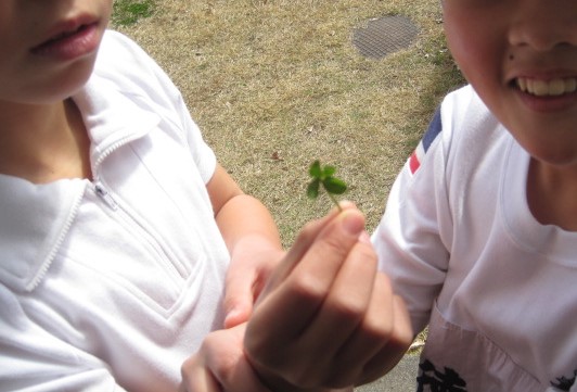 幸せを見つけました 作成者 matsuyamasyou_admin公開日 2022年2月22日 昼休みに職員室の外から,「見つけました」と大きな声が聞こえてきました。「四つ葉のクローバーです。」と4年生が喜んでいました。 小さなことでみんなと喜び合えるみんなは幸せ者ですね。