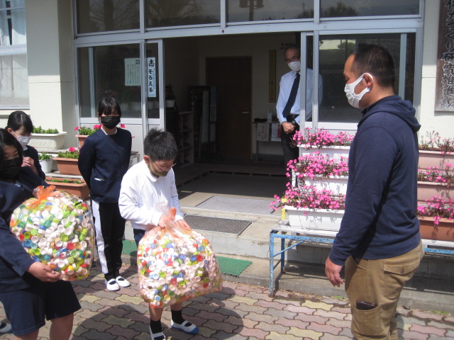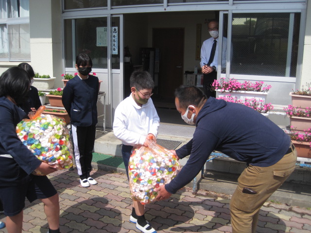 松山小のSDGs~ペットボトルキャップ寄贈~ 作成者 matsuyamasyou_admin公開日 2022年3月15日 総務委員会が中心になって回収したペットボトルキャップを福祉事務所へ寄贈しました。 回収したペットボトルキャップは溶かしてもう一度別の物へ生まれ変わるそうです。松山小の子どもたちもSDGsを続けていきます。