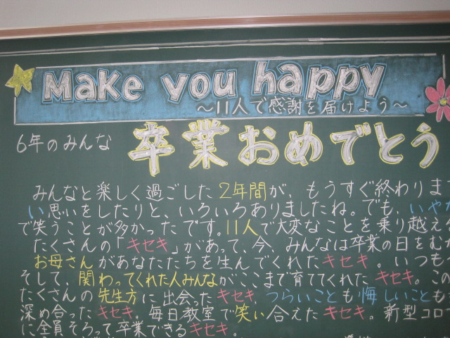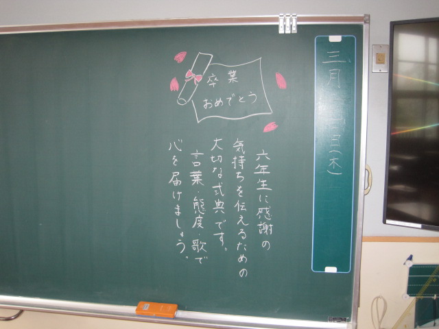素晴らしい卒業式でした 作成者 matsuyamasyou_admin公開日 2022年3月24日 コロナ禍で3回目の卒業式が行われました。卒業する6年生,送り出す5年生,保護者や職員の思いのつまった素晴らしい卒業式になりました。思うようにいかないこともありましたが,コロナに負けない気持ちで頑張りました。卒業生は,中学校での活躍を,バトンを渡された5年生は松山小のリーダーとして頑張ってくれることを期待しています。【6年生の朝の教室】 【5年生の朝の教室】 雨が続いていましたが,今日はすっきり晴れました。長い1年間も明日を残すのみとなりました。