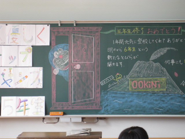 新しいとびらをひらこう 作成者 matsuyamasyou_admin公開日 2022年3月25日 5年生の教室の黒板です。 だれの前にも新しいとびらがあるのでしょう。とびらをあけて次のチャレンジをしていきましょう。