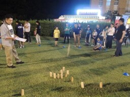 10月3日(金)の18時から城山公園にてスポーツ交流会が行われました。競技はモルックでした。モルックは昨年度のスポーツ交流会でとても盛り上がった競技で,ルールが難しそうに感じますが,慣れてしまえば老若男女誰でも楽しめるスポーツです。チームの仲間と協力し,倒したピンの合計が50点ぴったりになるようにします。最後のピンがなかなか思うように倒せないところが面白さにつながっています。交流会では,DJによるノリノリの曲が流れ,キッチンカーの美味しい食べ物でお腹が満たされました。地域・保護者・児童が一体となったお祭りのような楽しい夜になりました。今回のスポーツ交流会を企画・運営してくださったPTA保体部と新橋コミュニティ協議会の方々に感謝いたします。