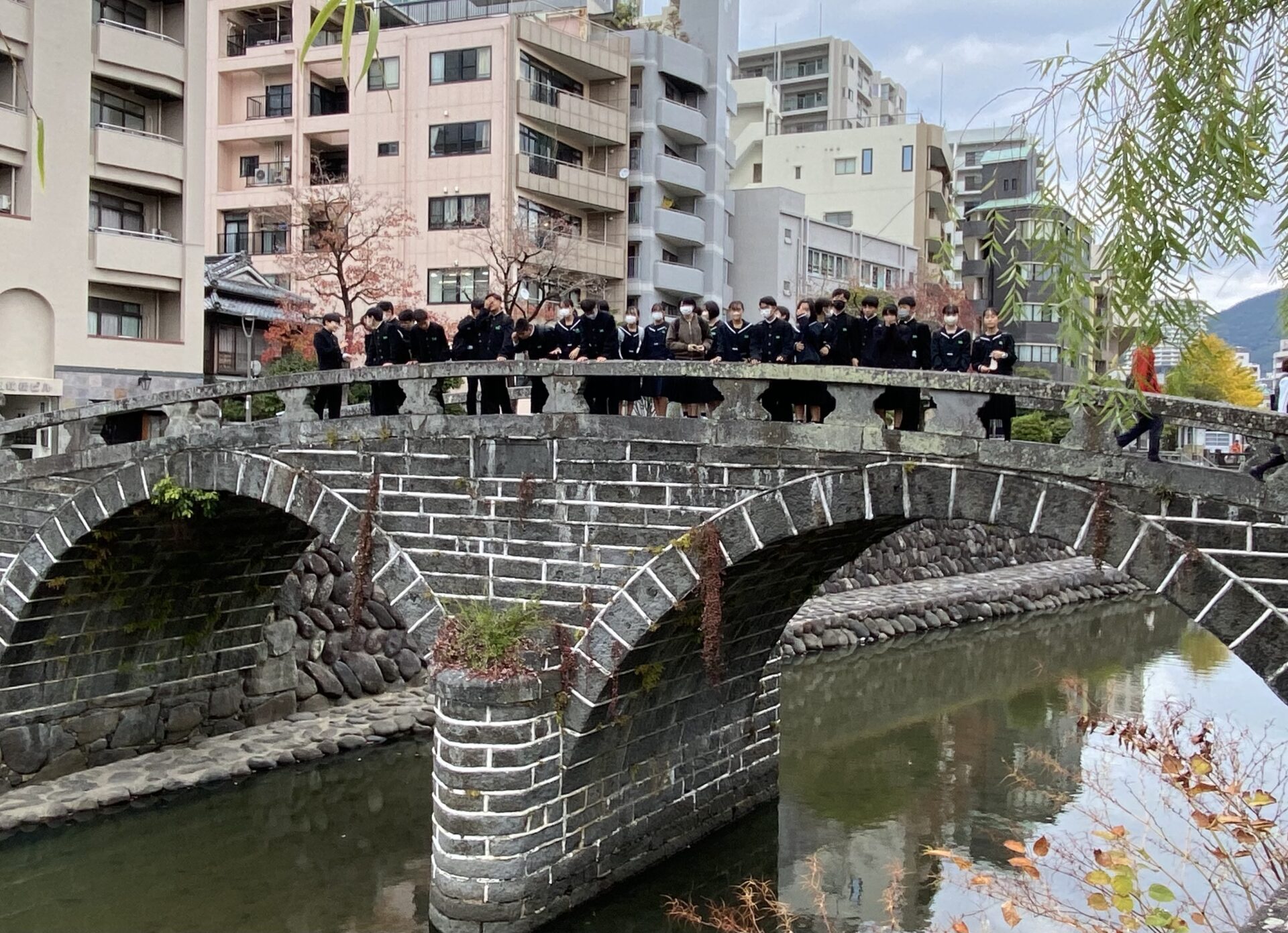 修学旅行隊:ホテル到着、これから夕食です。 作成者 matsuyamatyuu_admin公開日 2023年11月27日 平和学習を終えた修学旅行隊は、眼鏡橋から出島へ。そして先ほど伊王島ホテルへ到着しました。入館式を終えて部屋に入りました。19時から夕食です。大変素敵なホテルです。一般の方もいらっしゃるので過ごし方には注意をしながらゆっくりと疲れを癒して欲しいです。 初日は体調不良もなく皆、元気で1日を終えられそうです。