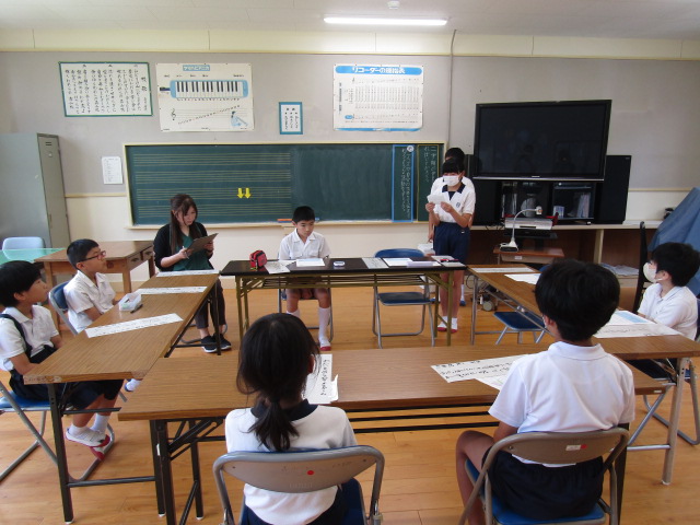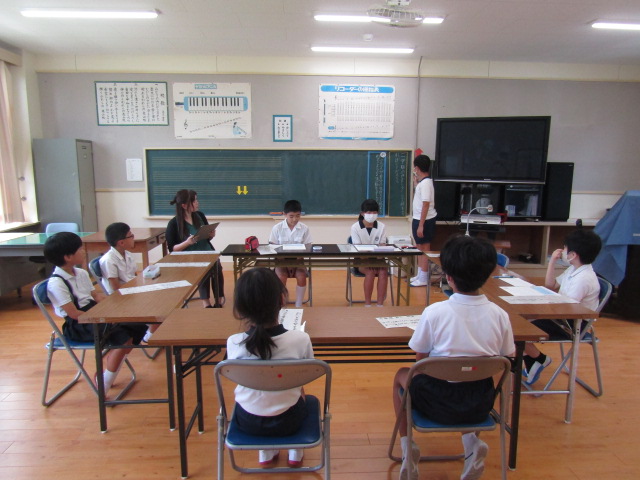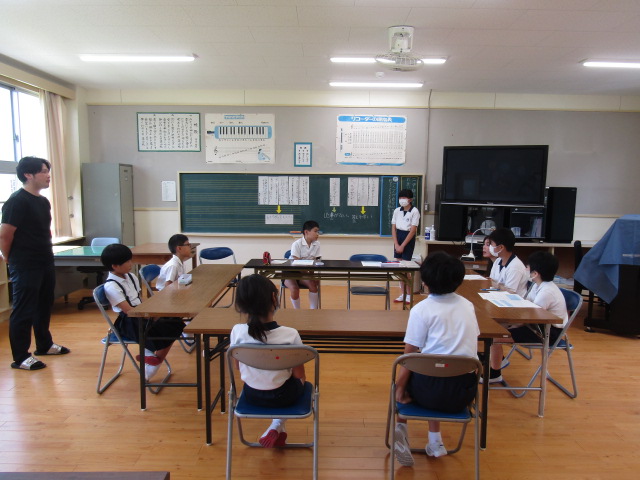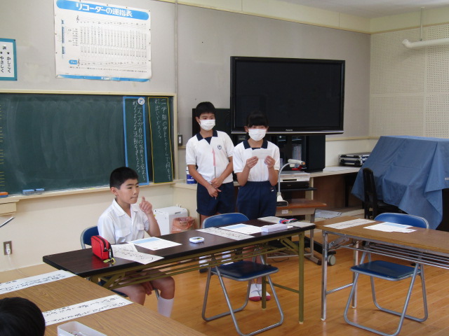 7月17日(水)の3校時、9月に行われる研究公開に向けての話し合い活動をしました。この日の議題は、「一人一人が自分の気持ちを伝えられるような活動を考えよう」です。