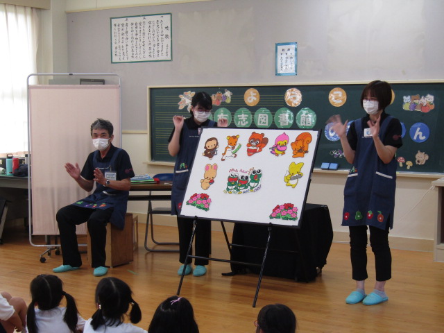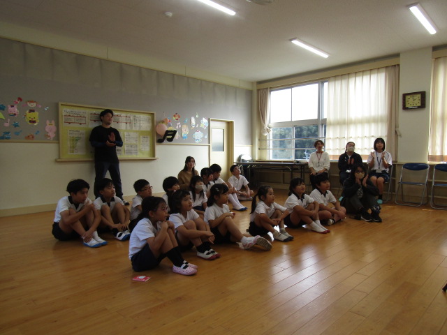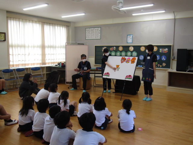 11月14日(木)、志布志市立図書館の方々にお越しいただき、「おはなし会」を行いました。大型絵本や手遊び歌、「ともだち」の絵本に合わせての手話など、盛りだくさんの内容で、森っ子たちも大喜びでした。また、当日は、図書館で職場体験をしていた志布志高校の生徒さん2名も一緒に、本を読んでくださいました。